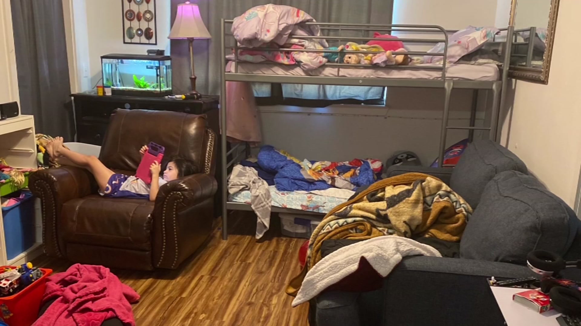 The parents and their three young children, including one who is participating in virtual learning, have been sleeping in their living room.