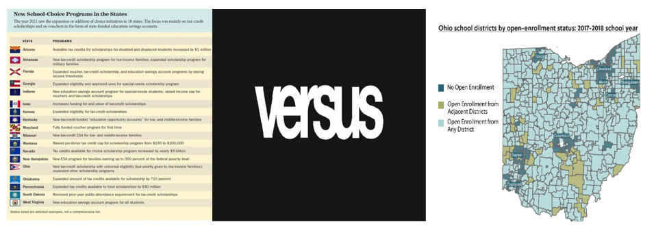 Likewise, Ohio’s private choice programs have been focused on urban schools, whereas Arizona’s private choice programs included both targeted and universal eligibility. Almost all Arizona districts participate in open enrollment.
